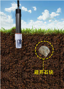 選定合適的測量地點(diǎn),避開石塊,確保探頭不會碰到堅硬的物體,按照所需測量深度拋開表層土,保持下面土壤原有的松緊程度,緊握傳感器垂直插入土壤,插入時不可左右晃動,一個測點(diǎn)的小范圍內(nèi)建議多次測量求平均值。
