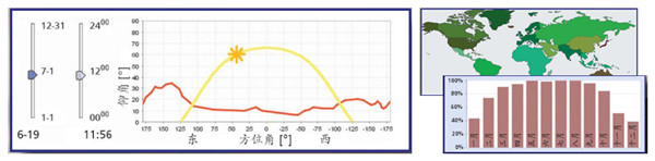 (6)可以針對不同的建筑、不同時(shí)間段進(jìn)行模擬計(jì)算軟件中采用動(dòng)態(tài)建筑模擬,考慮到建筑所有相關(guān)的參數(shù),包括幾何結(jié)構(gòu)、方位和熱質(zhì),提供詳細(xì)的隔熱數(shù)據(jù);同時(shí)軟件在計(jì)算中,由定位坐標(biāo)和地平線共同確定太陽的位置,每四分鐘更新一次,因此甚至可以專門針對某小時(shí)、某天或者某段時(shí)期內(nèi)的太陽能系統(tǒng)進(jìn)行模擬計(jì)算。
