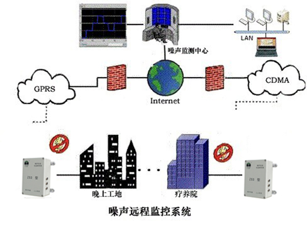 噪聲在線監測系統主要由三部分組成:現場噪聲數據采集,通信設備及通信平臺、調度中心。
