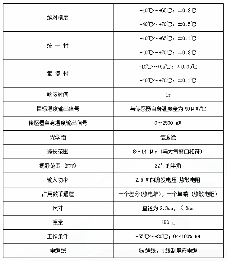 LWD-1紅外地表溫度傳感器是一種高精度的紅外溫度傳感器。它可以在野外條件下進行不間斷測量,它由一個熱電堆(被用來測量表面溫度)和一個熱敏電阻(被用來測量傳感器自身溫度)構成。兩種溫度探頭都被放置在一種包裹式鋁制導管內,該導管含有一個鍺制鏡。熱電堆和熱敏電阻輸出的都是毫伏電壓信號。我們的數采把測得的毫伏電壓信號,運用在Stefan-Boltzman方程中,就可以糾正由于傳感器自身的溫度對測量的目標溫度造成的影響。