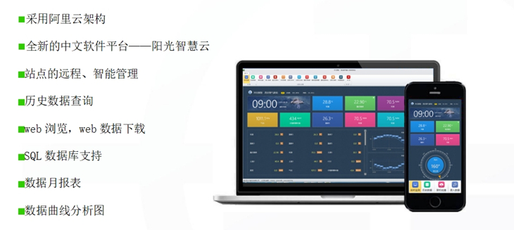 接入陽光智慧云平臺,設備數據全天侯實時云端監測,云端存儲。