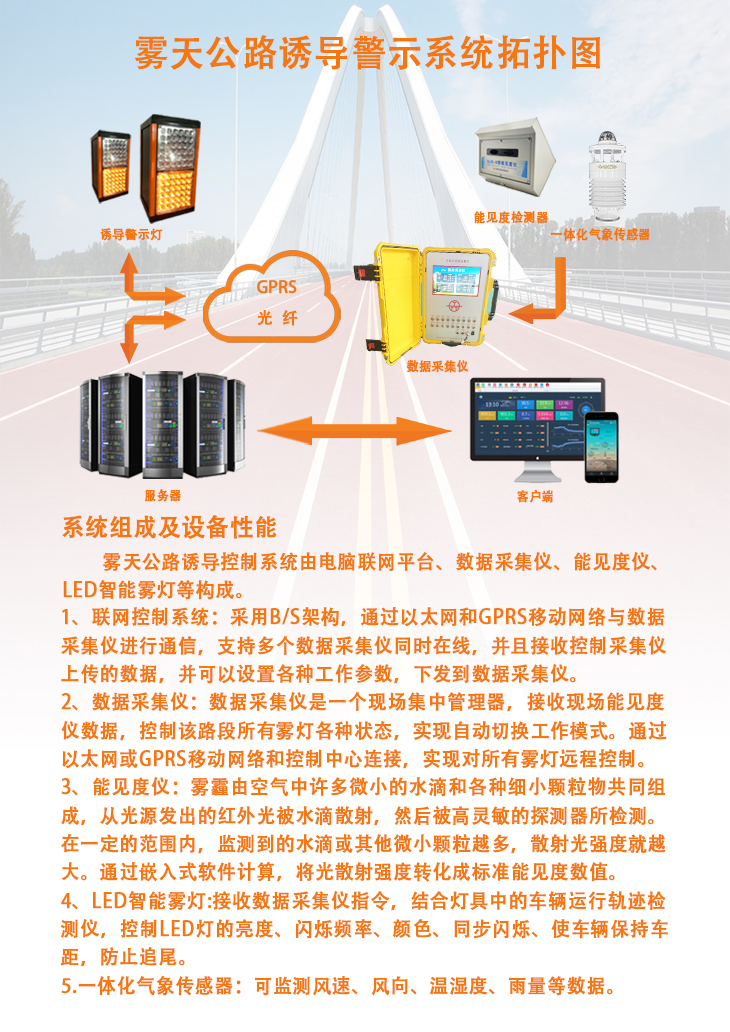 NJD-YD霧天公路誘導控制系統是陽光氣象公司針對霧天公路交通事故多發、行車困難等現狀提供的一套解決方案。