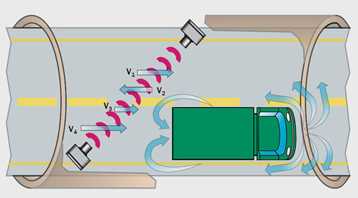 YG-JTDL15型隧道超聲波風速風向檢測器是特別為隧道內在線監測風速和風向而設計、制造的,采用超聲波時差法原理,將兩個超聲波探頭分別安裝在隧道內的兩側墻壁上,當隧道內氣流經過兩個超聲波探頭之間時,超聲波通過彼此發射波束往返的時間差從而得出隧道內的風速和風向值,由于采樣區橫跨整個隧道,所以檢測出的風速具有真實代表性。