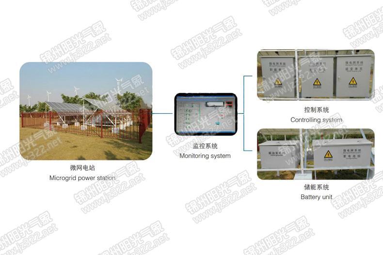 該系統是目前先進的風、光、柴、蓄、電五種電源互補系統,該系統優先使用風力和太陽能發電,當風力和太陽能發電不能滿足用電需求時,由蓄電池供電,當蓄電池不能滿足用電需求時,由柴油發電或者電網供電,可以最大空間發揮太陽能和風能發電的利用效率,適合海島、獨立供電局域電網等建設使用。同樣該系統可以并入國家電網進行發電。