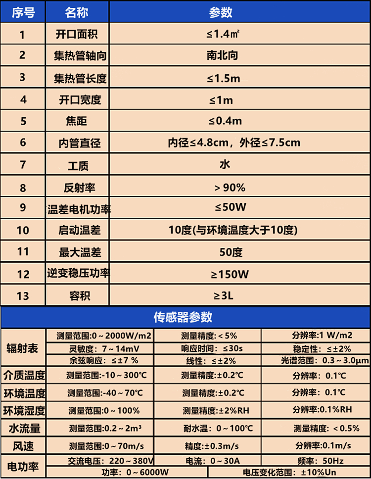 5、系統(tǒng)的支撐結構用于固定槽拋物面聚光鏡,并配合控制系統(tǒng)對集熱陣列進行一維跟蹤,以獲 得有效太陽輻射能;