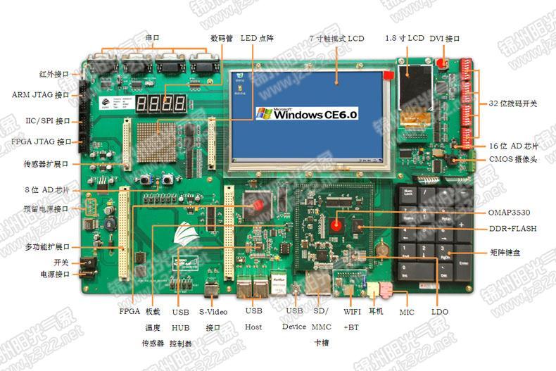 ★具有WIFI、Bluetooth、UART、USB、SD卡、以太網、DVI輸出、標準S-Video接口、TV-OUT輸出、LED數(shù)碼管、紅外接口、AC97接口、重力感應接口、攝像頭等主流音視頻部件。
