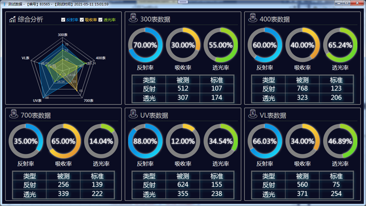 4.檢測數據自動存儲,實時顯示測試結果,自動計算并繪制反射率,吸收率,透光率曲線圖。